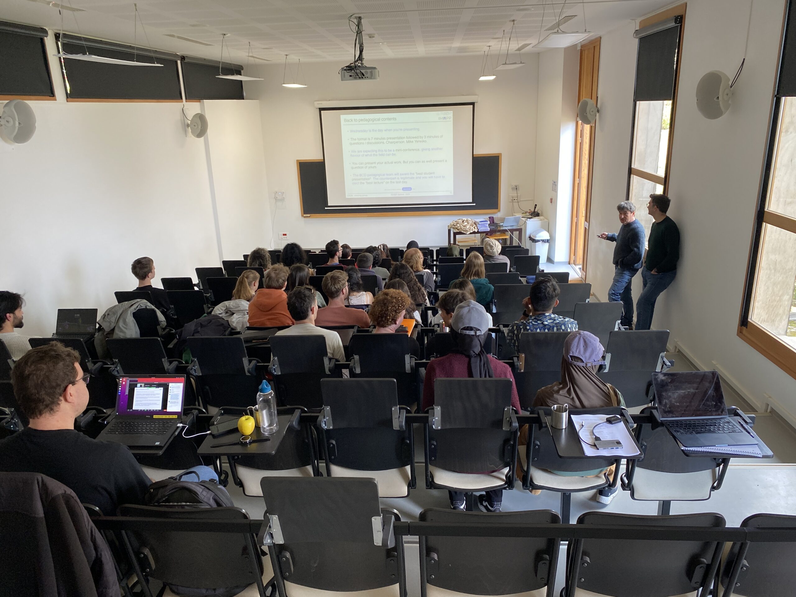 After the first semester spent in Clermont-Ferrand and just before the start of the second semester in Dortmund, IMAPP students stop in Cargèse (Corsica) at the Institut d’Études Scientifiques for the BCD School: an intensive one-week school on High Energy Physics.