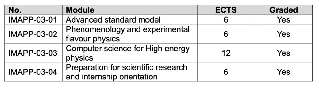 Compulsory modules sum up to 27 ECTS. No elective courses are foreseen.